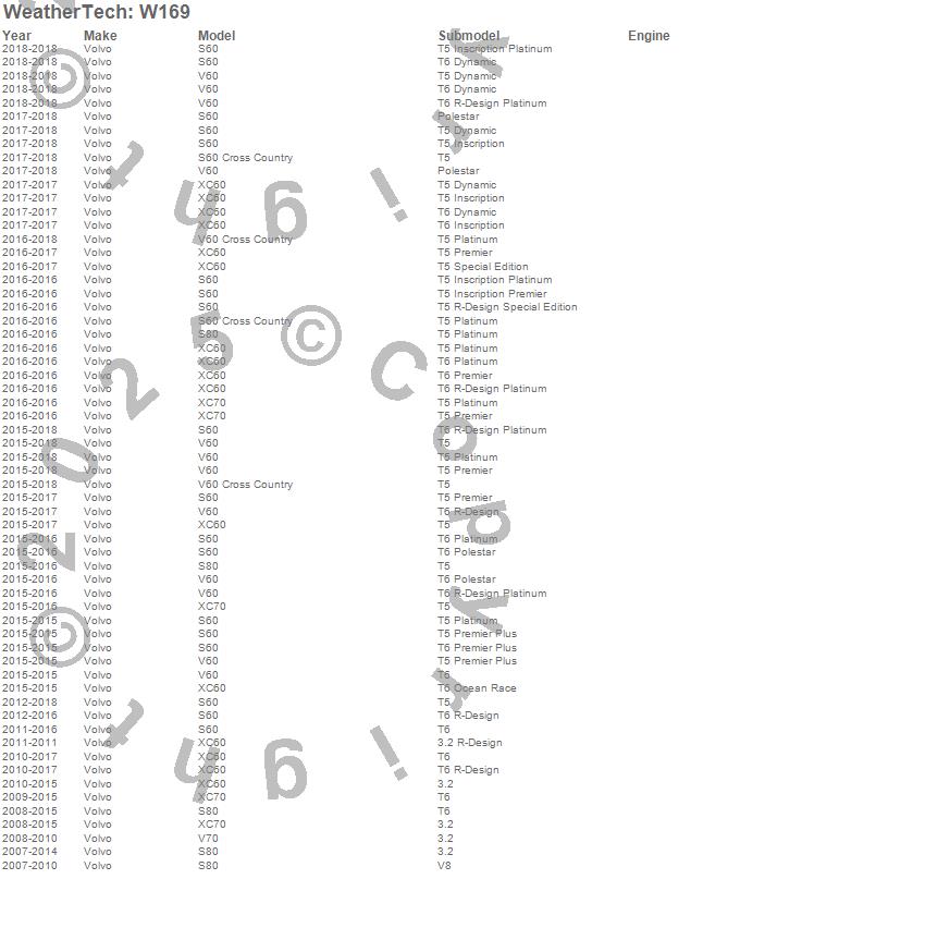 Below is an abreviated list of applications for the All Weather Floor Mats.