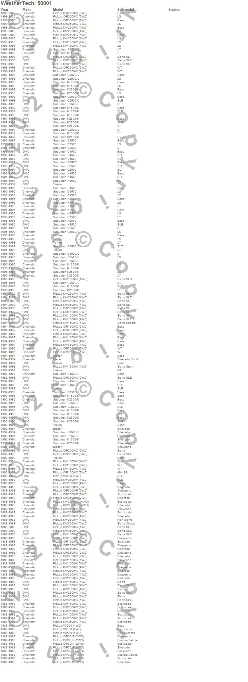 Blazer, C1500 Pickup, C1500 Suburban, C2500 Pickup, C2500 Suburban, C3500 Pickup, K1500 Pickup, K1500 Suburban, K2500 Pickup, K2500 Suburban, K2500 Suburban (Canadian), K3500 Pickup, R2500 Pickup, R30 Pickup, R3500 Pickup, Tahoe, V30 Pickup, V3500 Pickup, Yukon, Chevrolet more…