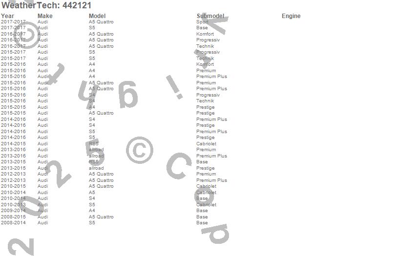 Below is an abreviated list of applications for the FloorLiner DigitalFit. A4, A4 allroad, A4 Quattro, A5, A5 Quattro, allroad, RS4, RS5, S4, S5, Audi, 2015, 2014, 2013, 2012, 2011, 2010, 2009, 2008 more…