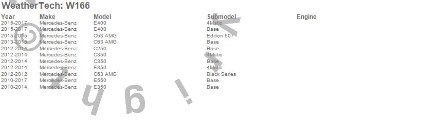 Below is an abreviated list of applications for the All Weather Floor Mats.