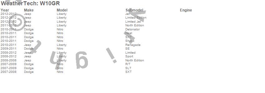 Below is an abreviated list of applications for the All Weather Floor Mats.