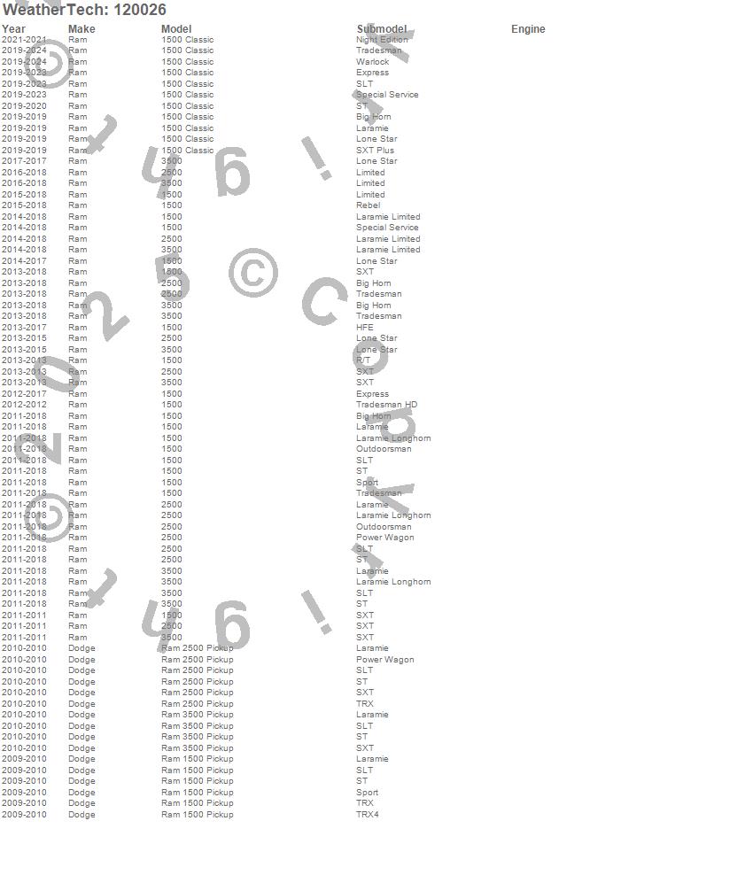 Below is an abreviated list of applications for the MudFlap No-Drill DigitalFit. 1500, 2500, 3500, Ram 2500, Ram 3500, Dodge, Ram, 2015, 2014, 2013, 2012, 2011, 2010, 2009 more…