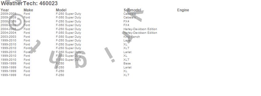 Below is an abreviated list of applications for the FloorLiner DigitalFit. F-250 Super Duty, F-350 Super Duty, Ford, 2010, 2009, 2008, 2007, 2006, 2005, 2004, 2003, 2002, 2001, 2000, 1999 more…