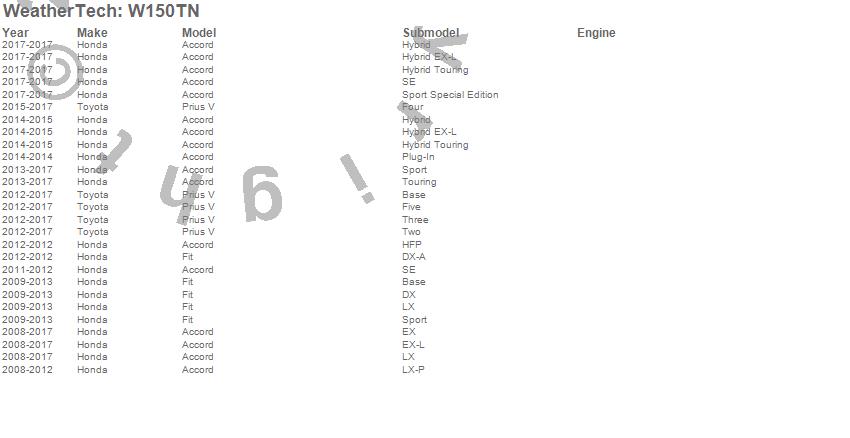 Below is an abreviated list of applications for the All Weather Floor Mats.
