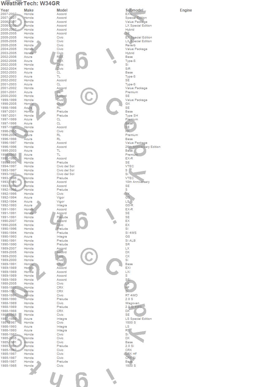 Below is an abreviated list of applications for the All Weather Floor Mats.