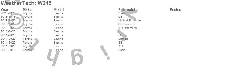 Below is an abreviated list of applications for the All Weather Floor Mats.