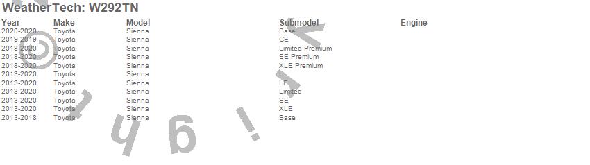 Below is an abreviated list of applications for the All Weather Floor Mats.
