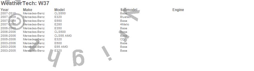 Below is an abreviated list of applications for the All Weather Floor Mats.