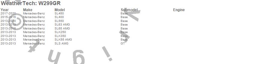 Below is an abreviated list of applications for the All Weather Floor Mats.