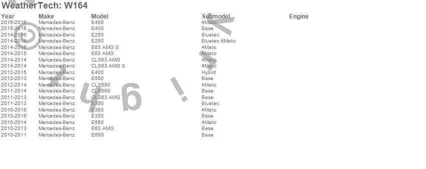 Below is an abreviated list of applications for the All Weather Floor Mats.