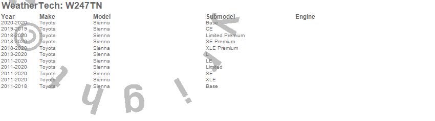Below is an abreviated list of applications for the All Weather Floor Mats.