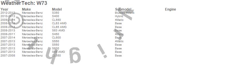 Below is an abreviated list of applications for the All Weather Floor Mats.