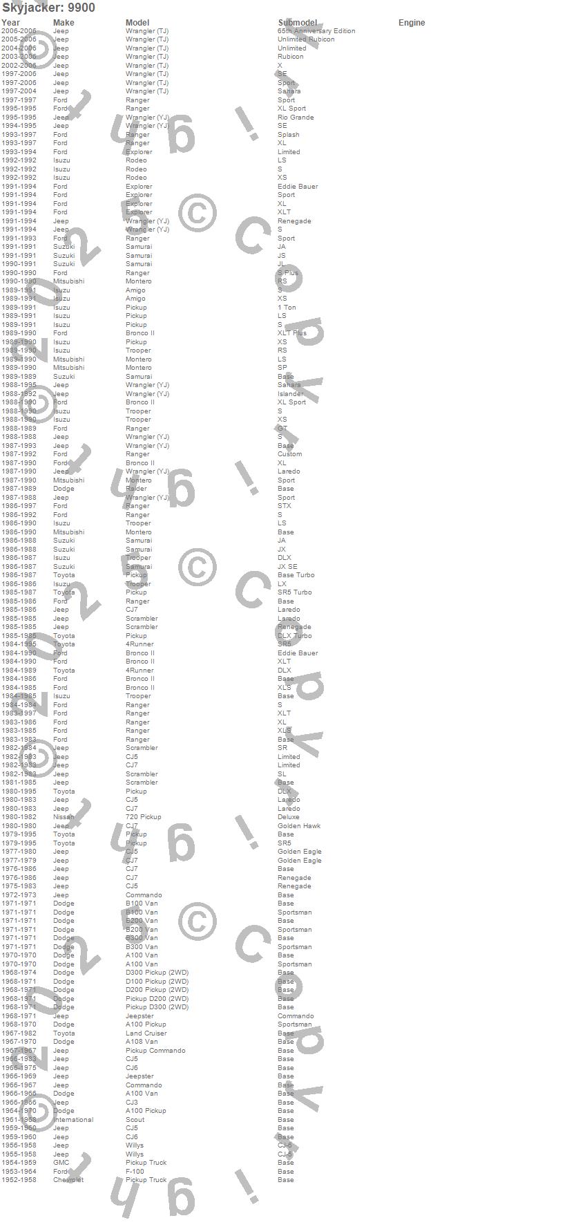 4Runner, 720 Pickup, A100 Truck, A100 Van, A108 Van, Amigo, B100 Van, B200 Van, B300 Van, Bronco II, CJ3, CJ5, CJ6, CJ7, Commando, D100 Pickup, D200 Pickup, D300 Pickup, Explorer, F-100 more…