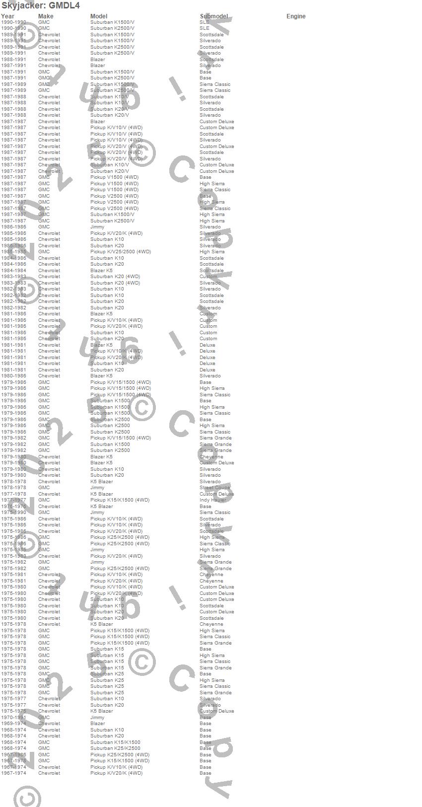 Blazer, Blazer K5, Jimmy, K10 Pickup, K10 Suburban, K15 Suburban, K15/K1500, K15/K1500 Suburban, K1500, K1500 Suburban, K20 Pickup, K20 Suburban, K25 Pickup, K25 Suburban, K25/K2500 Pickup, K25/K2500 Suburban, K2500 Pickup, K2500 Suburban, V10 Pickup, V10 Suburban more…