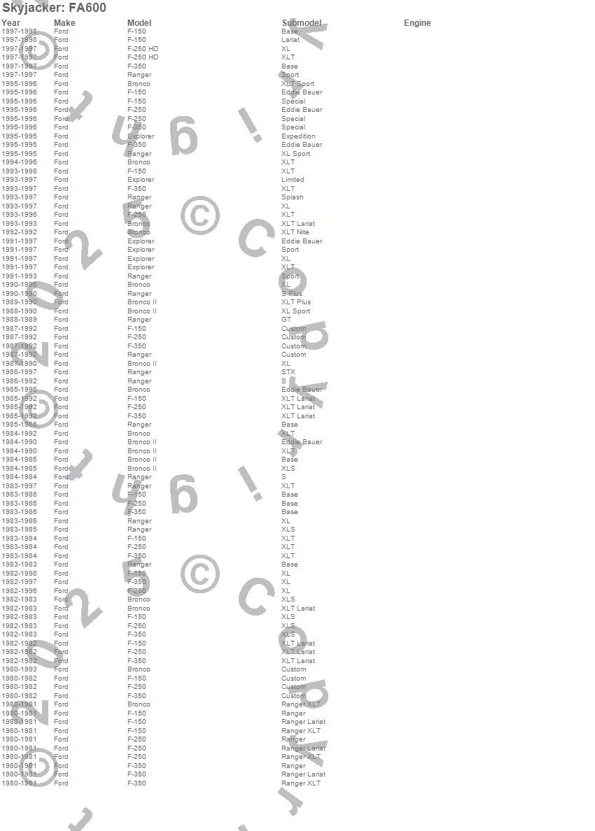Bronco, Bronco II, Explorer, F-150, F-250, F-350, Ranger, Ford, 1998, 1997, 1996, 1995, 1994, 1993, 1992, 1991, 1990, 1989, 1988, 1987 more…