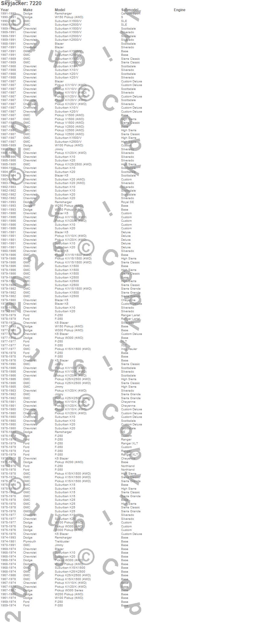Blazer, Blazer K5, F-250, F-350, Jimmy, K10 Pickup, K10 Suburban, K15 Suburban, K15/K1500, K15/K1500 Suburban, K1500, K1500 Suburban, K20 Pickup, K20 Suburban, K25 Pickup, K25 Suburban, K25/K2500 Pickup, K25/K2500 Suburban, K2500 Pickup, K2500 Suburban more…