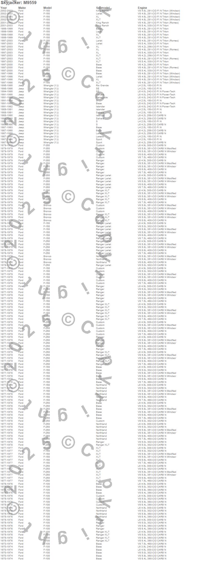 Bronco, F-100, F-150, F-250, F-350, Wrangler (YJ), Ford, Jeep, 2003, 2002, 2001, 2000, 1999, 1998, 1997, 1995, 1994, 1993, 1992, 1991 more…