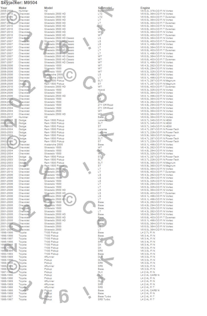 Below is an abreviated list of applications for the M95 Performance Monotube Shock Absorber.