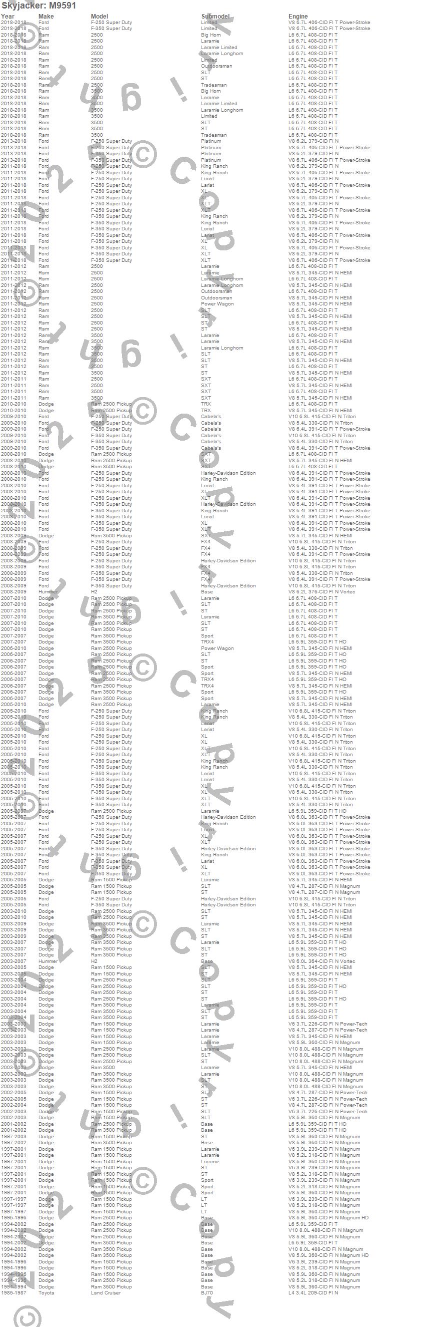2500, 3500, F-250 Super Duty, F-350 Super Duty, H2, Land Cruiser, Ram 1500, Ram 2500, Ram 3500, Dodge, Ford, Hummer, Ram, Toyota, 2014, 2013, 2012, 2011, 2010, 2009 more…