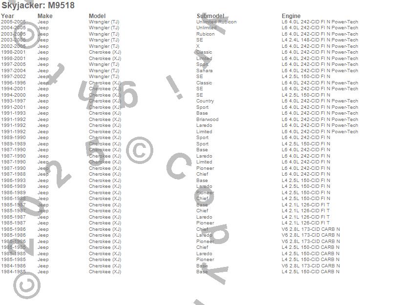 Cherokee (XJ), Wrangler (LJ), Wrangler (TJ), Jeep, 2005, 2004, 2003, 2002, 2001, 2000, 1999, 1998, 1997, 1996, 1995, 1994, 1993, 1992, 1991, 1990 more…