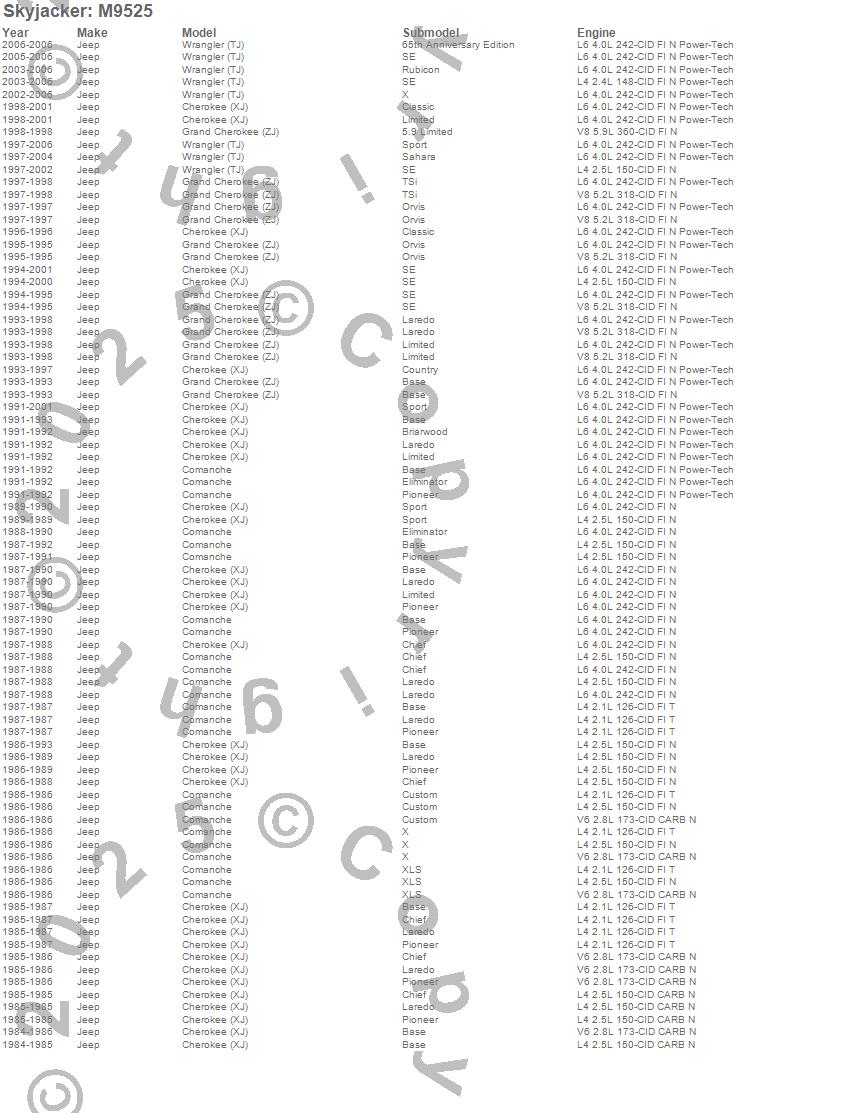 Cherokee (XJ), Comanche, Grand Cherokee (ZJ), Wrangler (TJ), Jeep, 2006, 2005, 2004, 2003, 2002, 2001, 2000, 1999, 1998, 1997, 1996, 1995, 1994, 1993, 1992 more…