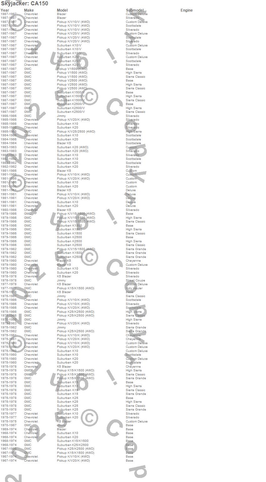 Blazer, Blazer K5, Jimmy, K10 Pickup, K10 Suburban, K15 Suburban, K15/K1500, K15/K1500 Suburban, K1500, K1500 Suburban, K20 Pickup, K20 Suburban, K25 Pickup, K25 Suburban, K25/K2500 Pickup, K25/K2500 Suburban, K2500 Pickup, K2500 Suburban, V10 Pickup, V10 Suburban more…