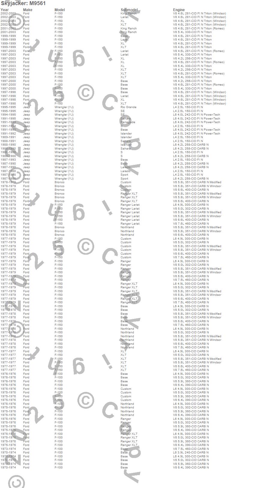 Bronco, F-100, F-150, Wrangler (YJ), Ford, Jeep, 2003, 2002, 2001, 2000, 1999, 1998, 1997, 1995, 1994, 1993, 1992, 1991, 1990, 1989 more…