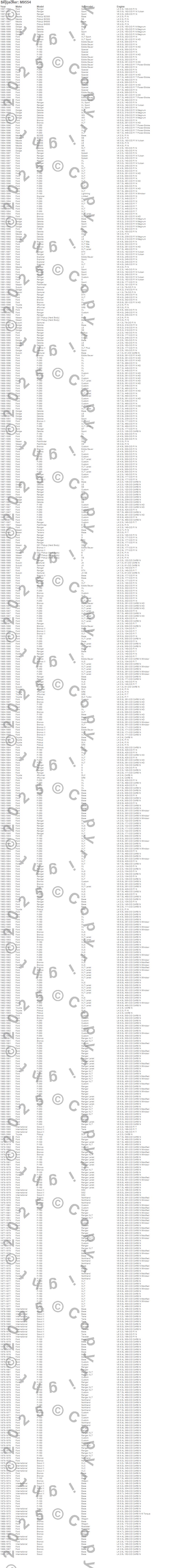 4Runner, B2300, B3000, B4000, Bronco, Bronco II, D21 Pickup (Hard Body), Dakota, Explorer, F-100, F-150, F-250, F-350, Navajo, Pathfinder, Pickup, Ranger, Samurai, Scout, Scout II more…
