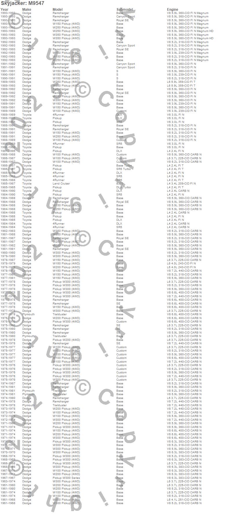 4Runner, Land Cruiser, Pickup, Ramcharger, Trailduster, W100 Pickup, W150 Pickup, W200 Pickup, W250 Pickup, W300 Pickup, W300 Series, W350 Pickup, Dodge, Plymouth, Toyota, 1995, 1994, 1993, 1992, 1991 more…