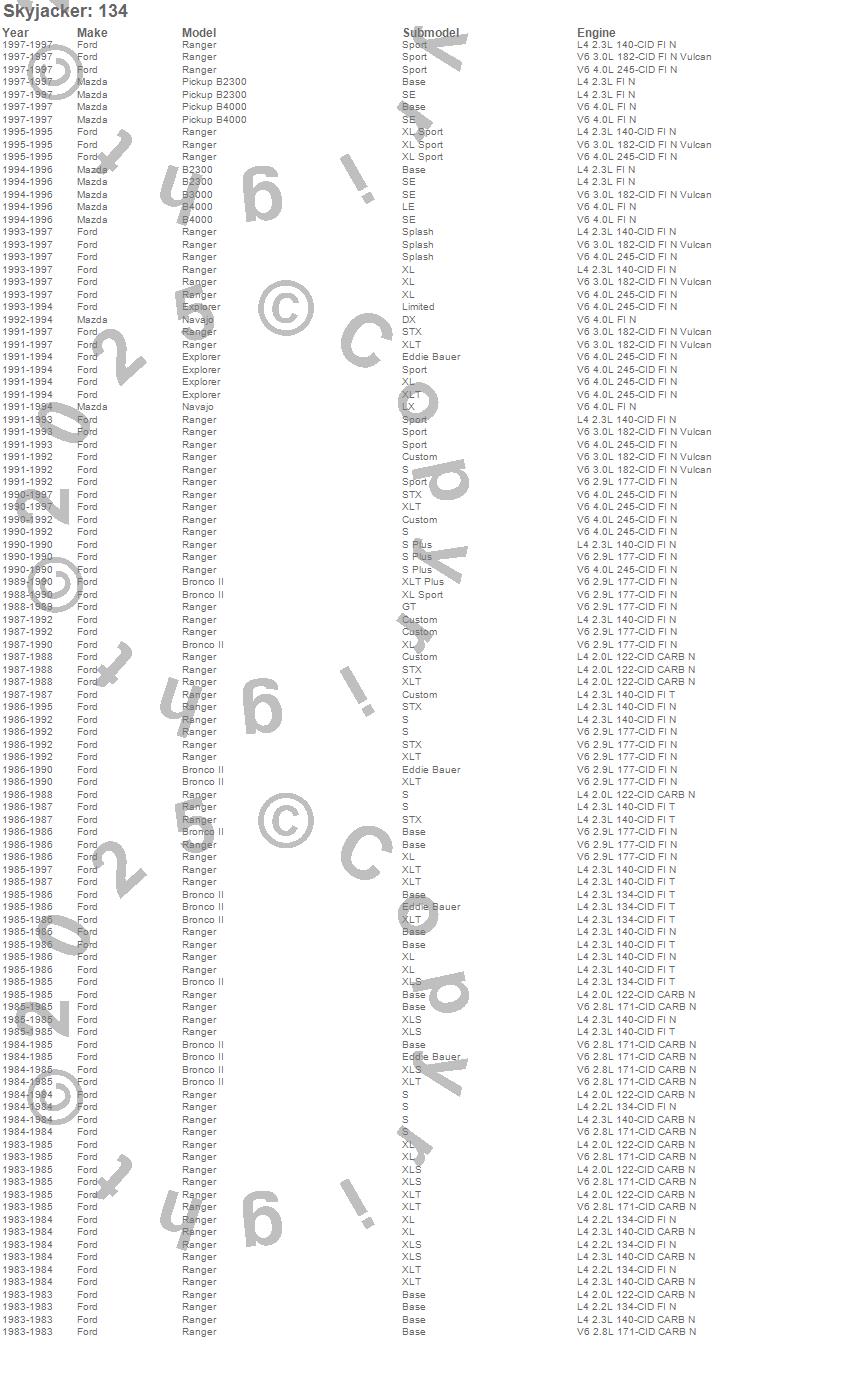 B2300, B3000, B4000, Bronco II, Explorer, Navajo, Ranger, Ford, Mazda, 1997, 1996, 1995, 1994, 1993, 1992, 1991, 1990, 1989, 1988, 1987 more…