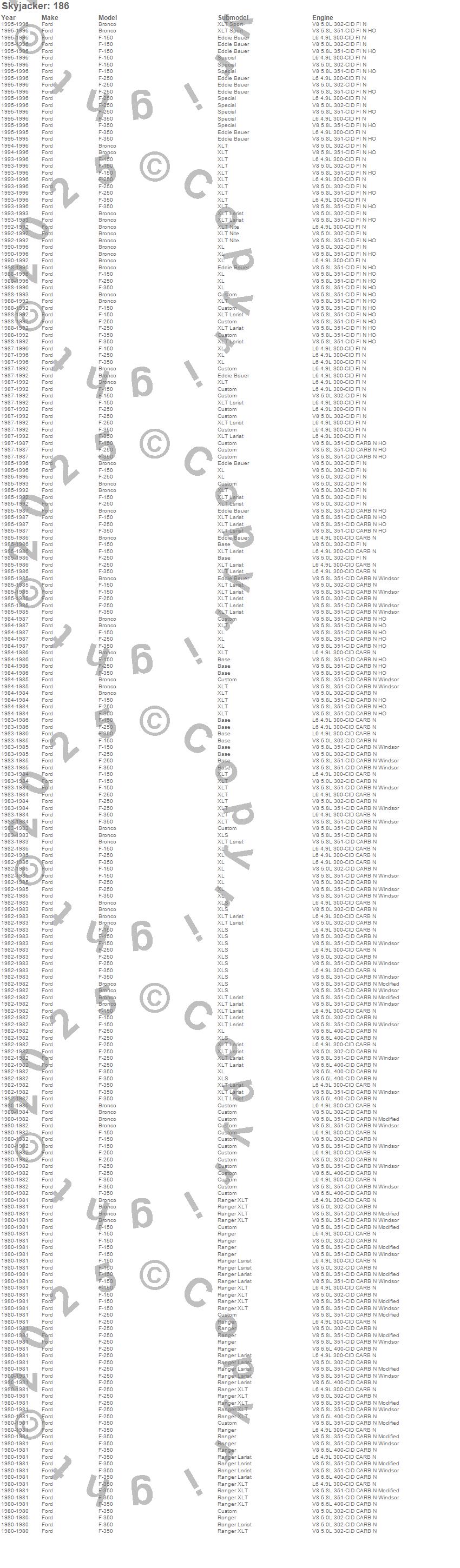 Bronco, F-150, F-250, F-350, Ford, 1996, 1995, 1994, 1993, 1992, 1991, 1990, 1989, 1988, 1987, 1986, 1985, 1984, 1983, 1982 more…