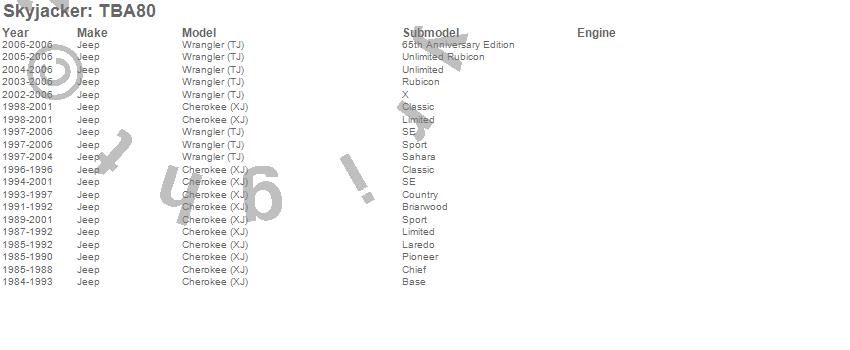 Cherokee (XJ), Wrangler (LJ), Wrangler (TJ), Jeep, 2006, 2005, 2004, 2003, 2002, 2001, 2000, 1999, 1998, 1997, 1996, 1995, 1994, 1993, 1992, 1991 more…