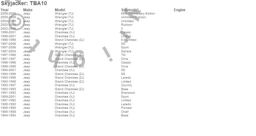 Cherokee (XJ), Grand Cherokee (ZJ), Wrangler (LJ), Wrangler (TJ), Jeep, 2006, 2005, 2004, 2003, 2002, 2001, 2000, 1999, 1998, 1997, 1996, 1995, 1994, 1993, 1992 more…