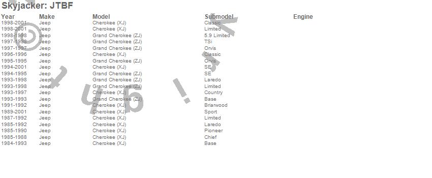 Cherokee (XJ), Grand Cherokee (ZJ), Jeep, 2001, 2000, 1999, 1998, 1997, 1996, 1995, 1994, 1993, 1992, 1991, 1990, 1989, 1988, 1987, 1986, 1985 more…