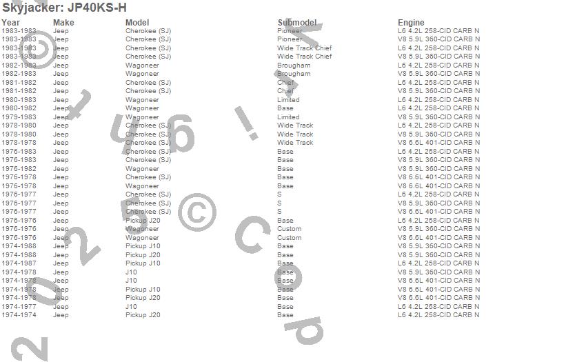 Cherokee (SJ), J10, J20, Wagoneer, Jeep, 1988, 1987, 1986, 1985, 1984, 1983, 1982, 1981, 1980, 1979, 1978, 1977, 1976, 1975, 1974 more…