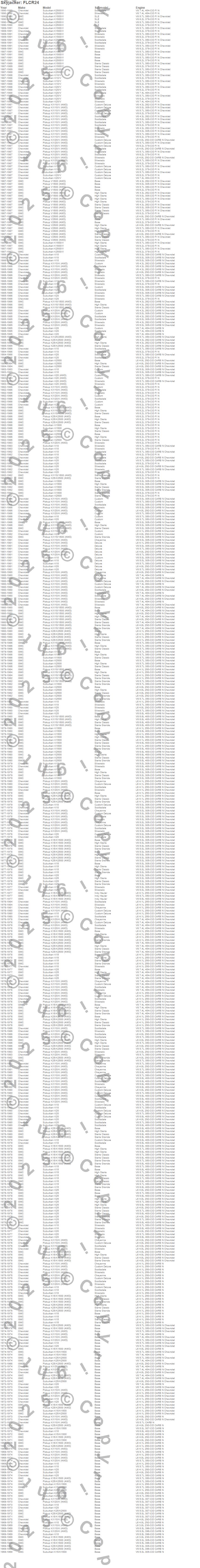 K10 Pickup, K10 Suburban, K15 Suburban, K15/K1500, K15/K1500 Suburban, K1500, K1500 Suburban, K20 Pickup, K20 Suburban, K25 Pickup, K25 Suburban, K25/K2500 Pickup, K25/K2500 Suburban, K2500 Pickup, K2500 Suburban, V10 Pickup, V10 Suburban, V1500 Pickup, V1500 Suburban, V20 Pickup more…