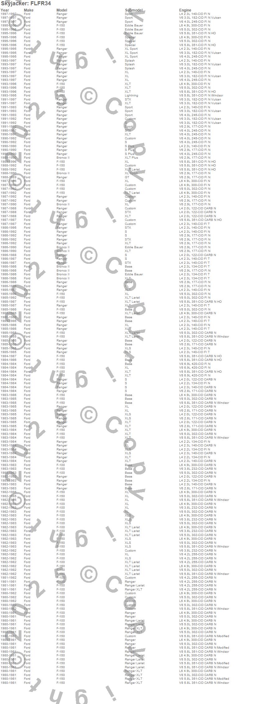 Bronco II, F-100, F-150, Ranger, Ford, 1997, 1996, 1995, 1994, 1993, 1992, 1991, 1990, 1989, 1988, 1987, 1986, 1985, 1984, 1983 more…