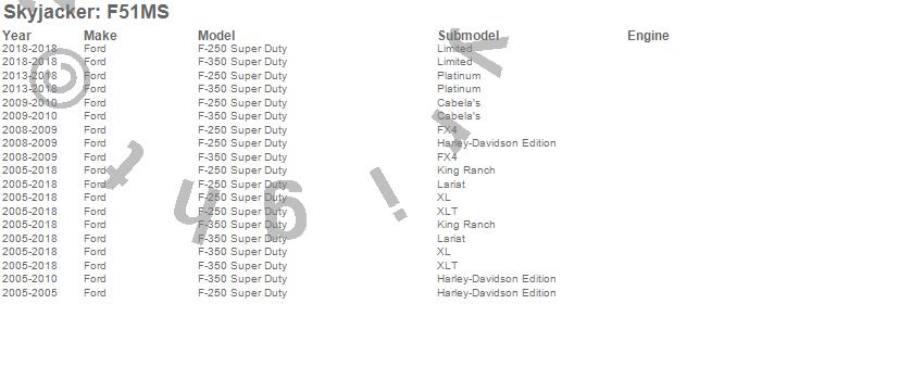 Skyjacker Aluminum Spacer Leveling Kit F51MS Features: