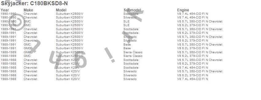 Below is an abreviated list of applications for the Suspension Lift Kit w/Shock.