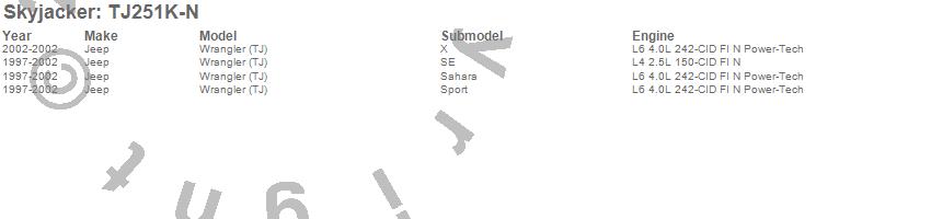 Skyjacker Suspension Lift Kit w/Shock TJ251K-N Features: