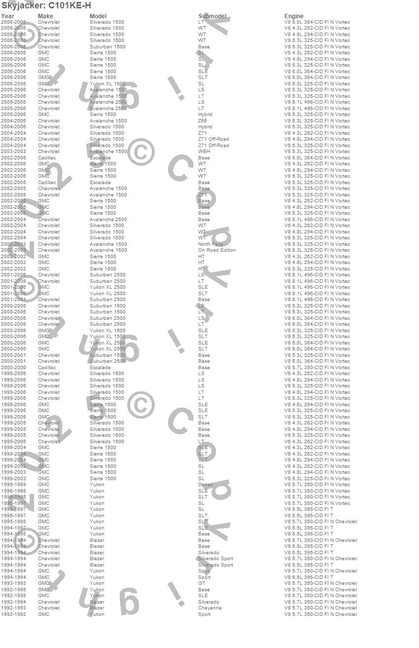 Avalanche 1500, Avalanche 2500, Blazer, Escalade, Sierra 1500, Silverado 1500, Suburban 1500, Suburban 2500, Yukon, Yukon XL 1500, Yukon XL 2500, Cadillac, Chevrolet, GMC, 2006, 2005, 2004, 2003, 2002, 2001 more…