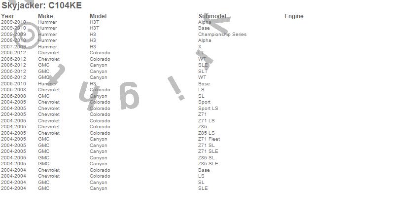 Below is an abreviated list of applications for the Torsion Key Front Leveling Kit.