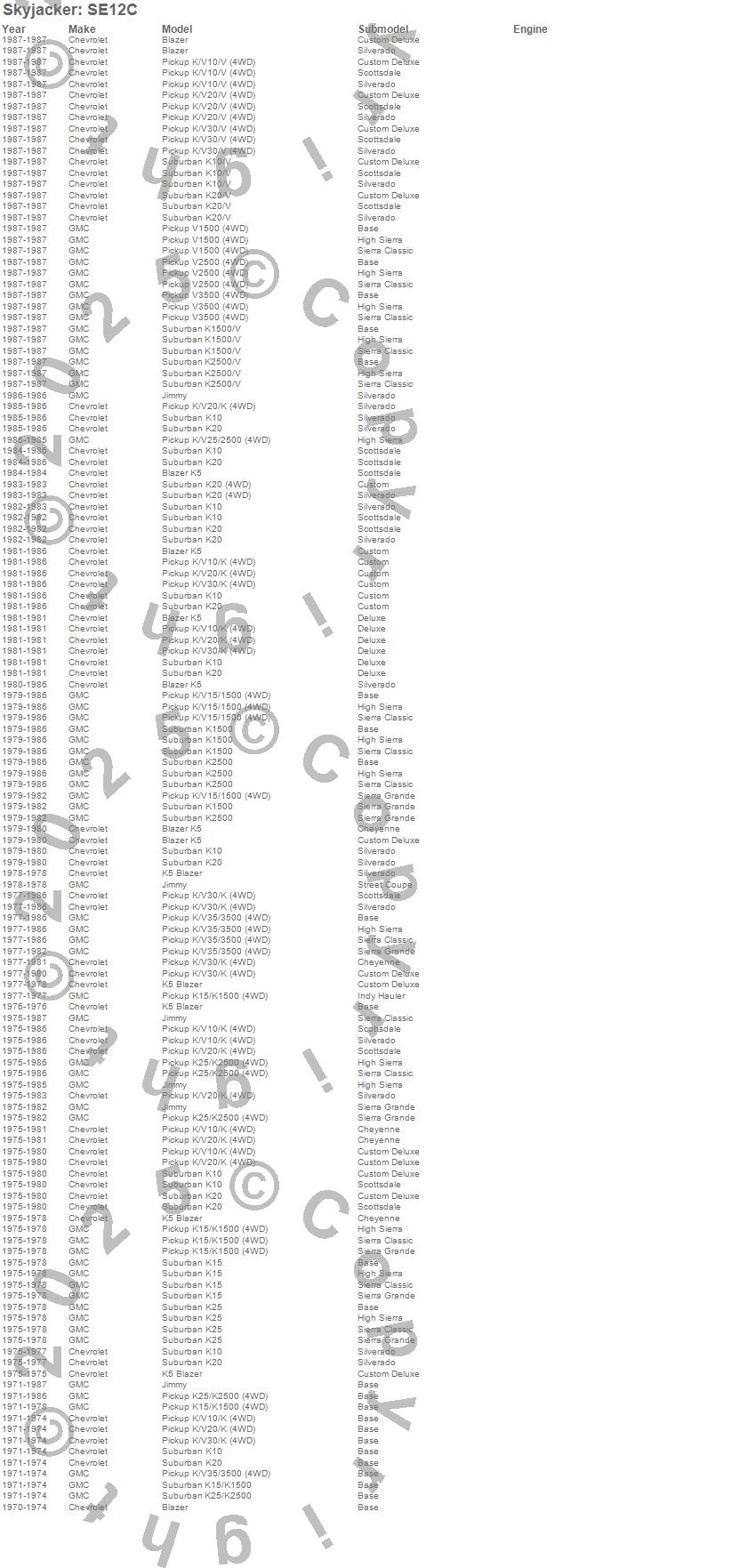 Blazer, Blazer K5, Jimmy, K10 Pickup, K10 Suburban, K15 Suburban, K15/K1500, K15/K1500 Suburban, K1500, K1500 Suburban, K20 Pickup, K20 Suburban, K25 Pickup, K25 Suburban, K25/K2500 Pickup, K25/K2500 Suburban, K2500 Pickup, K2500 Suburban, K30 Pickup, K35 Pickup more…
