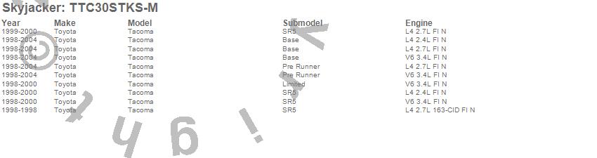 Skyjacker Suspension Lift Kit w/Shock TTC30STKS-M Features: