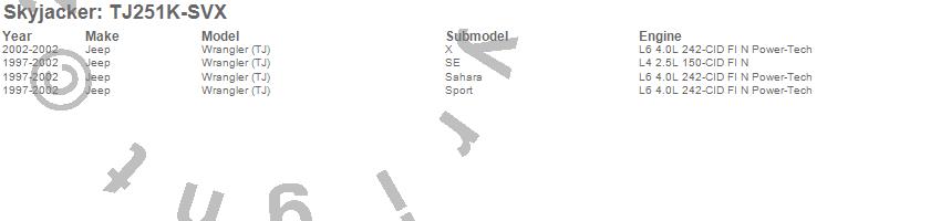 Skyjacker Value Flex Suspension Lift Kit TJ251K-SVX Features: