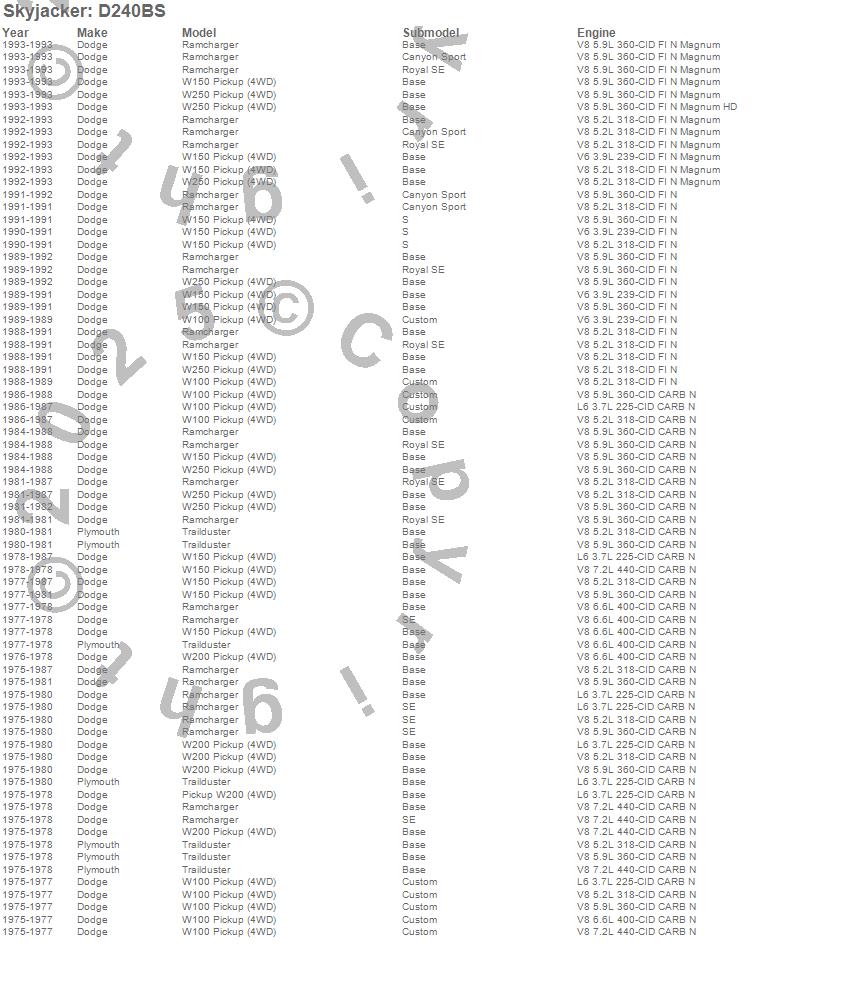 Ramcharger, Trailduster, W100 Pickup, W150 Pickup, W200 Pickup, W250 Pickup, Dodge, Plymouth, 1993, 1992, 1991, 1990, 1989, 1988, 1987, 1986, 1985, 1984, 1983, 1982 more…