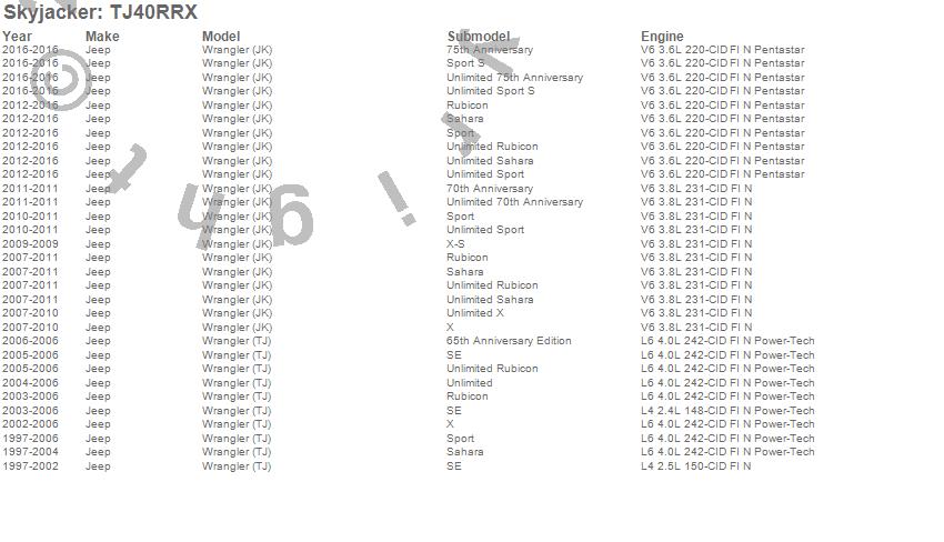 Skyjacker Component Box For PN[TJ40RR1K] TJ40RRX Features: