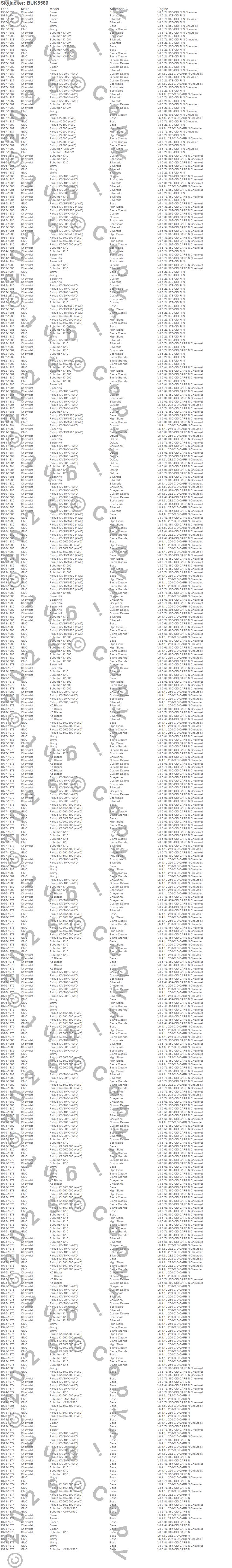 Blazer, Blazer K5, Jimmy, K10 Pickup, K10 Suburban, K15 Suburban, K15/K1500, K15/K1500 Suburban, K1500, K1500 Suburban, K20 Pickup, K25 Pickup, K25/K2500 Pickup, K2500 Pickup, V10 Suburban, V1500 Suburban, V20 Pickup, V2500 Pickup, Chevrolet, GMC more…