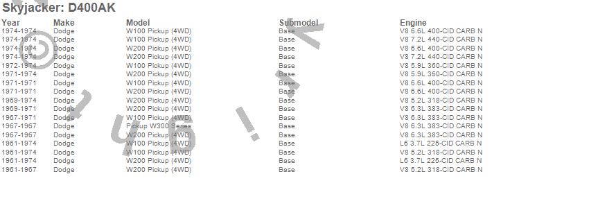 W100 Pickup, W200 Pickup, W300 Series, Dodge, 1974, 1973, 1972, 1971, 1970, 1969, 1968, 1967, 1966, 1965, 1964, 1963, 1962, 1961 more…