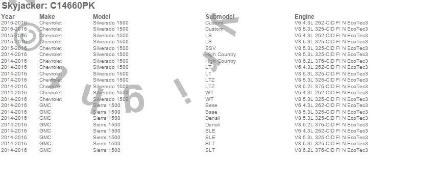 Skyjacker Suspension Lift Kit C14660PK Features: